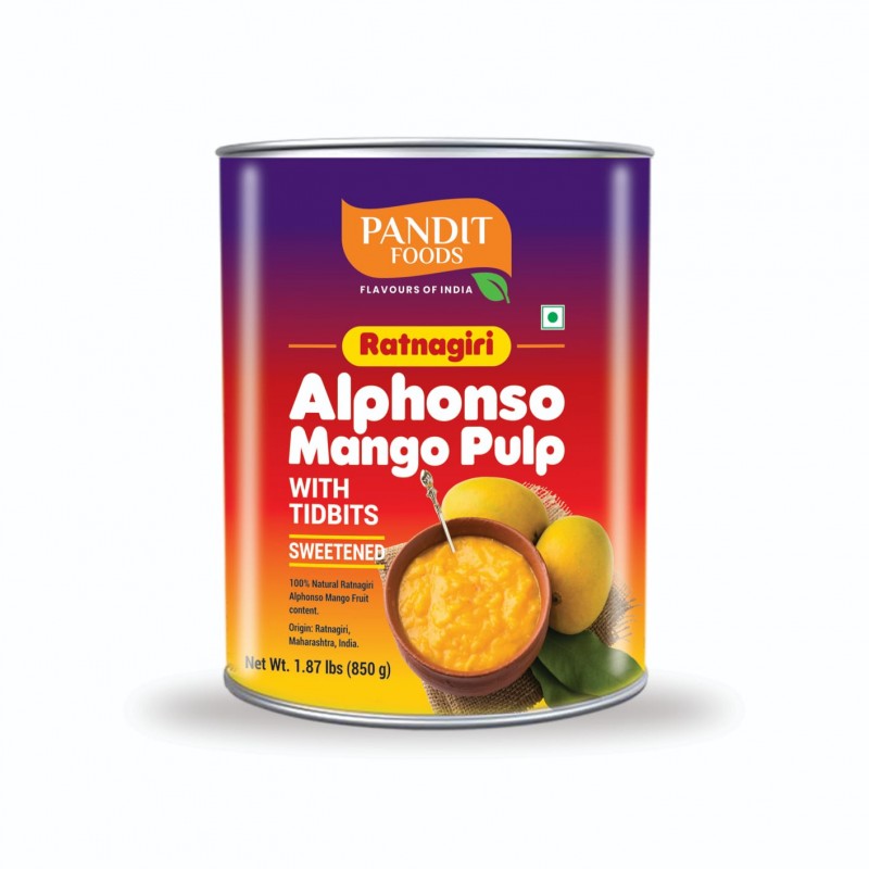Pandit Foods Ratnagiri Alphonso Mango Pulp With Tidbits Sweetened (850 gm)